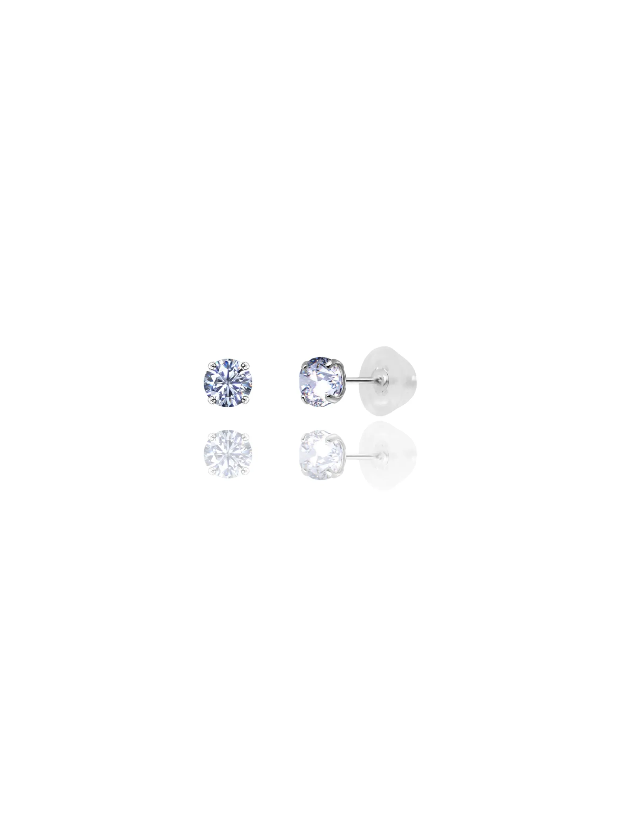 14K White Gold 4MM Round CZ Pushback Stud Earrings