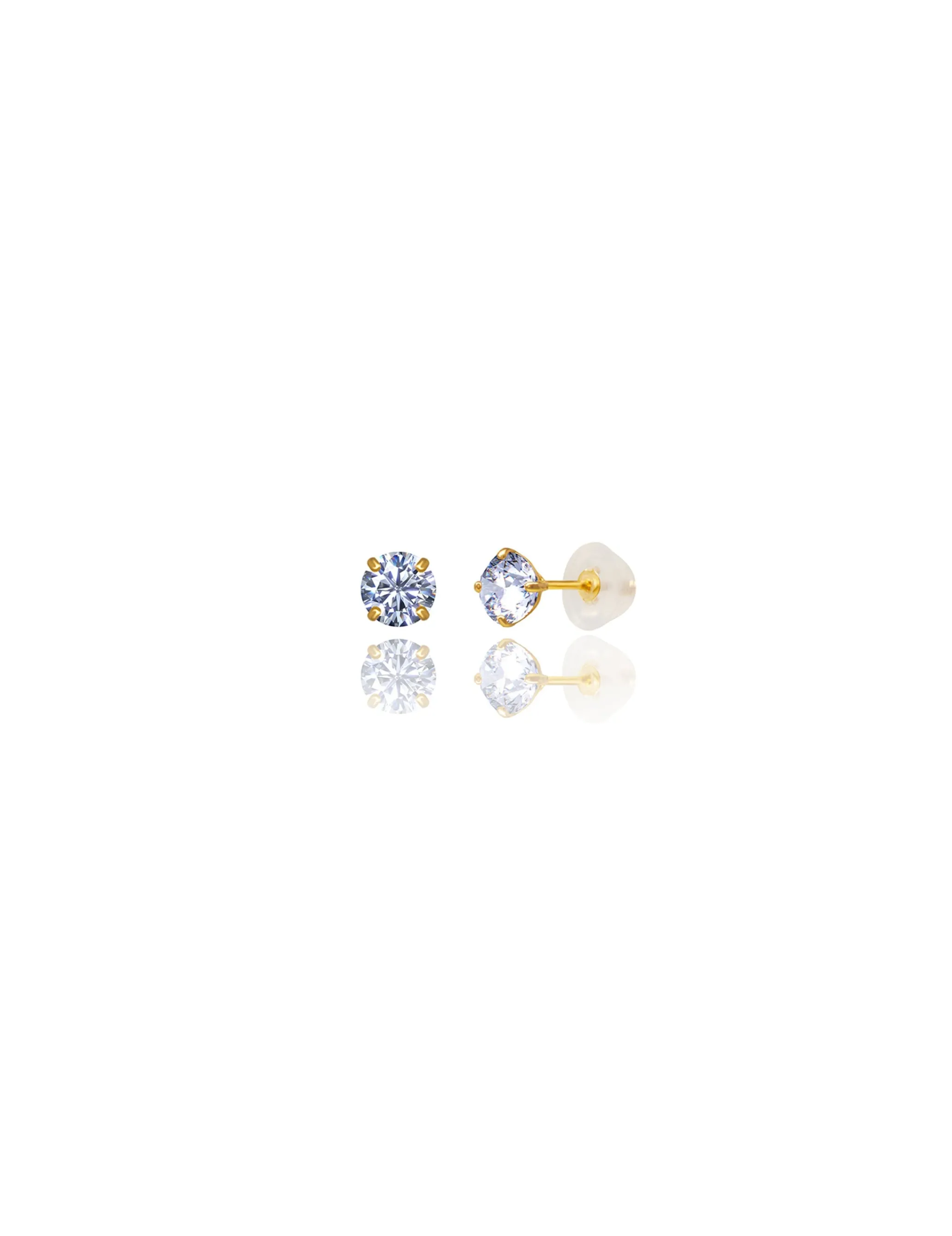 14K Yellow Gold 4MM Round CZ Pushback Stud Earrings