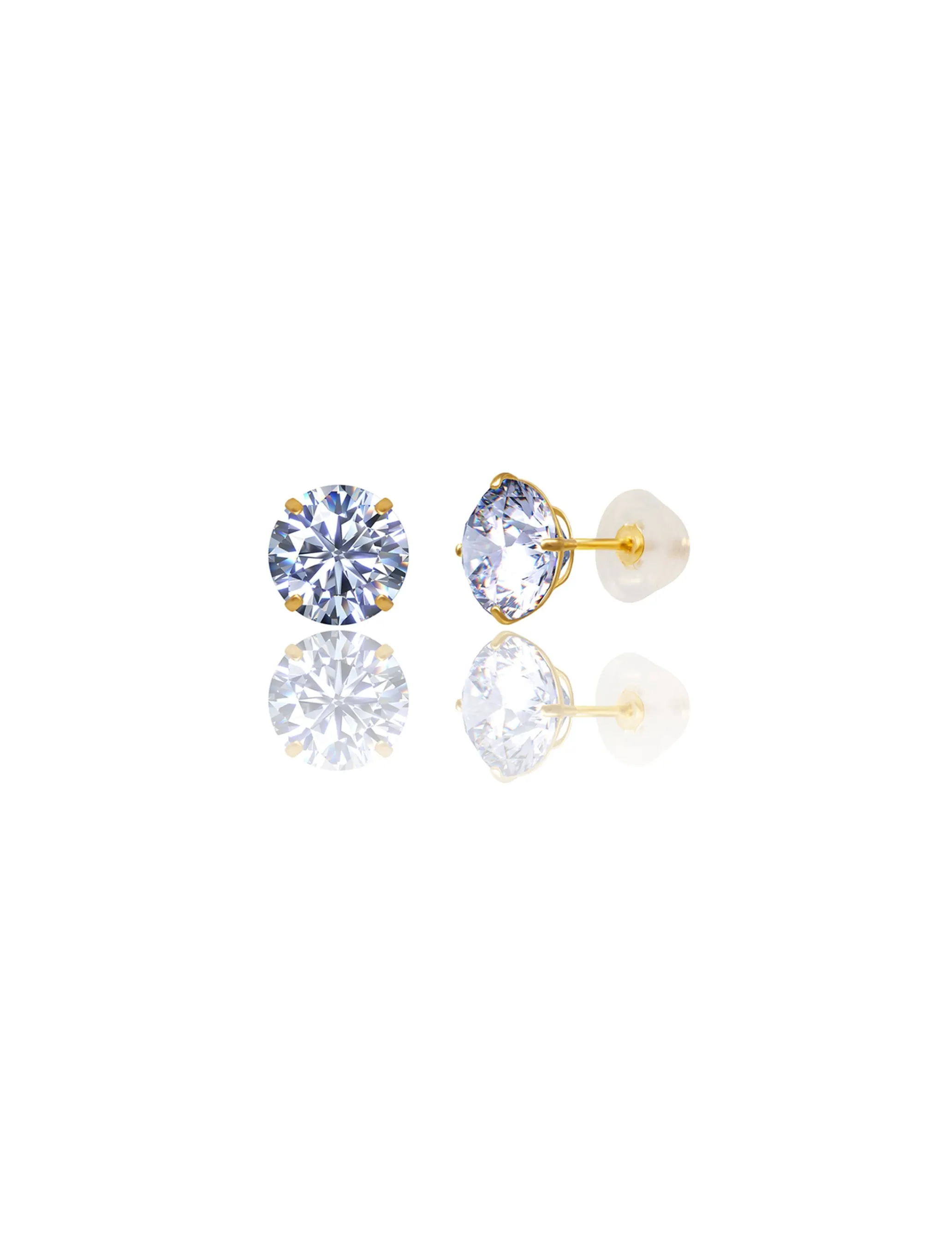14K Yellow Gold 8MM Round CZ Pushback Stud Earrings