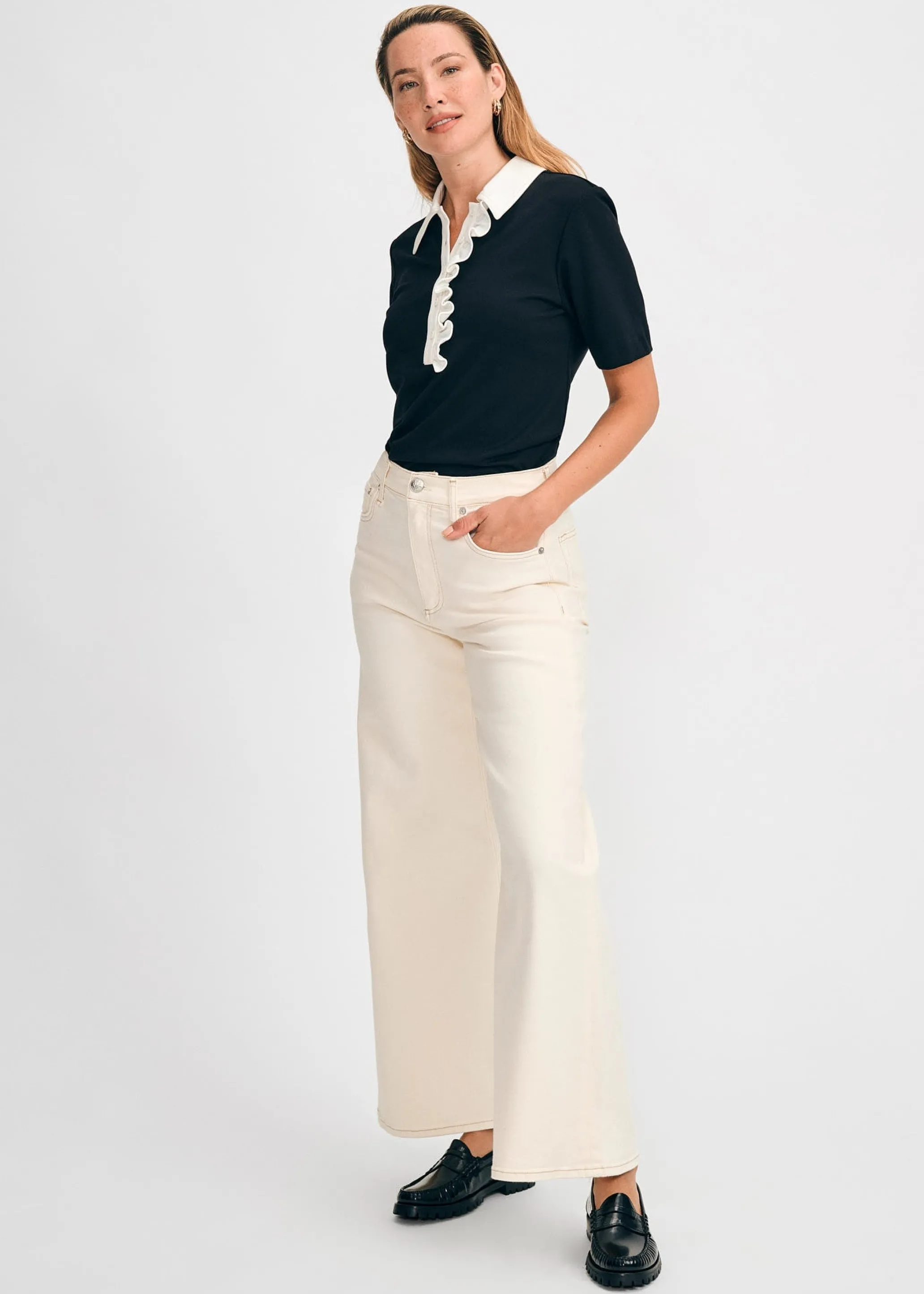 The Boxy Ruffle Top is a blend of femininity and structured design. The ponte knit balances softness with structure, offering both comfort and sophistication. Whether paired with tailored pants for a polished office look or worn casually with jeans, this top is a versatile and chic addition to your wardrobe essentials.